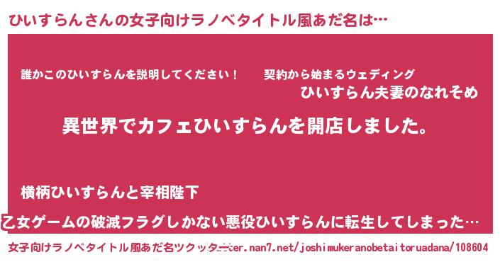 | 胡散臭い通販商品みたいなあだ名 | 『前代未聞の健康食品…その名も「ひいすらん」』 |