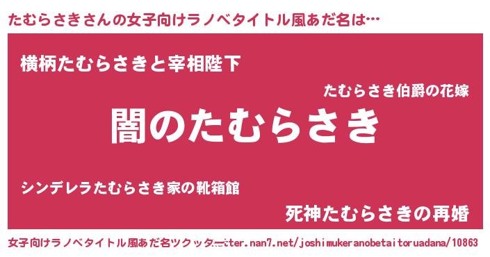 | 男性向けラノベタイトル風あだ名 | 『Re:たむらさきから始める異世界生活』 |