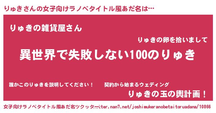 | 胡散臭い通販商品みたいなあだ名 | 『絶対に幸福をもたらす水素水…その名も「りゅき」』 |