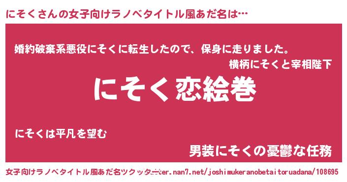 | 男性向けラノベタイトル風あだ名 | 『ノーゲーム・ノーニソク』 |