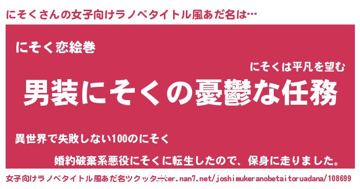 | 男性向けラノベタイトル風あだ名 | 『うちのにそくが世界を掌握している!』 |