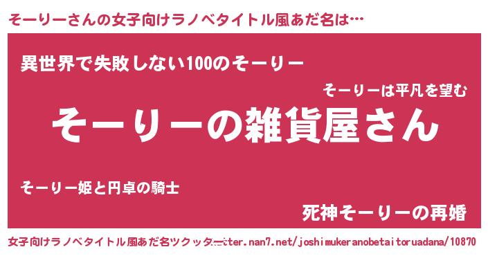| 胡散臭い通販商品みたいなあだ名 | 『幸せが訪れる高級そうな壺…その名も「そーりー」』 |