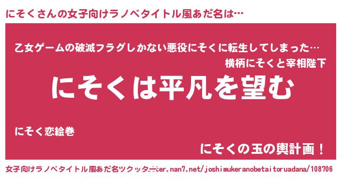 | ヒーロー風カッコイイあだ名 | 『黄金騎士ニソ』『仮面ニソダー』 |