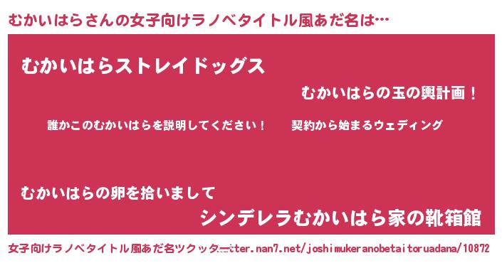 | 男性向けラノベタイトル風あだ名 | 『ムカイハラアートオンライン』 |