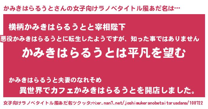 かみきはらるうとさんの女子向けラノベタイトル風あだ名