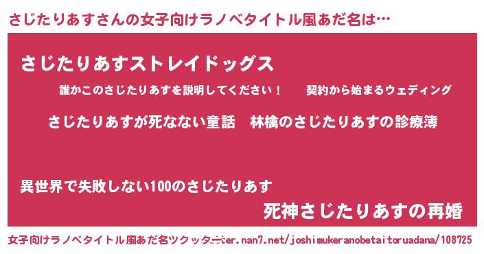 | 男性向けラノベタイトル風あだ名 | 『魔弾の王とさじたりあす』 |