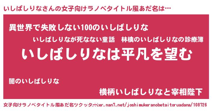 | 胡散臭い通販商品みたいなあだ名 | 『信頼と実績のサプリメント…その名も「いしばしりな」』 |