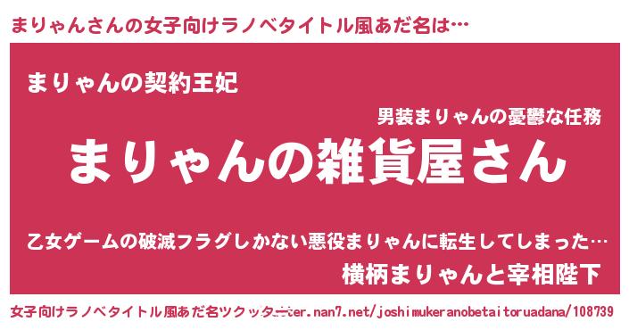 | 男性向けラノベタイトル風あだ名 | 『やはりまりゃんの青春ラブコメはまちがっている 』 |