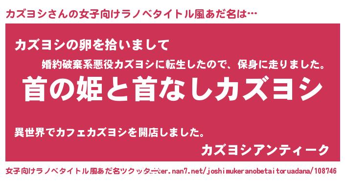 | 胡散臭い通販商品みたいなあだ名 | 『伝統あるサプリメント…その名も「カズヨシ」』 |