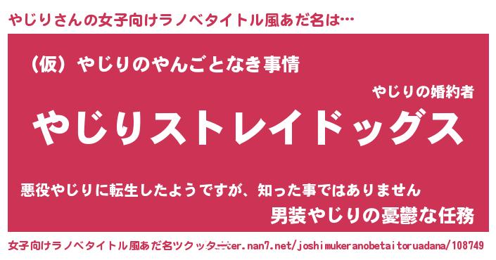 | 男性向けラノベタイトル風あだ名 | 『Re:やじりから始める異世界生活』 |