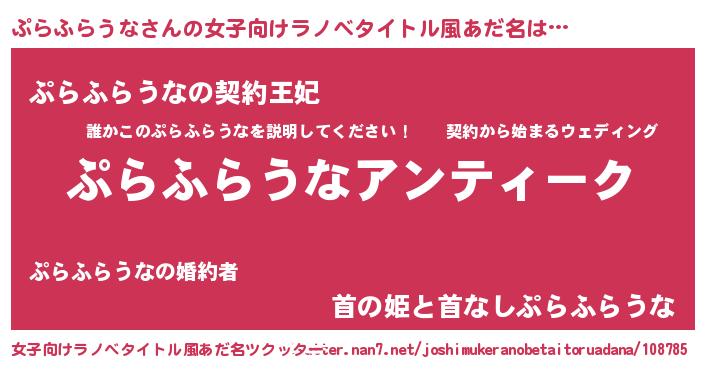 | 男性向けラノベタイトル風あだ名 | 『魔法科高校のぷらふらうな』 |