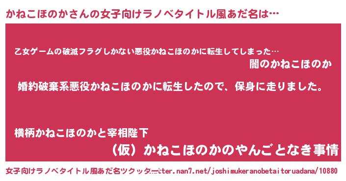 | 胡散臭い通販商品みたいなあだ名 | 『ハリウッド女優が絶賛した100年もののヴィンテージワイン…その名も「かねこほのか」』 |