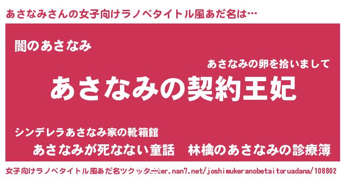 | 男性向けラノベタイトル風あだ名 | 『あさなみという概念が存在しない退屈な世界 』 |