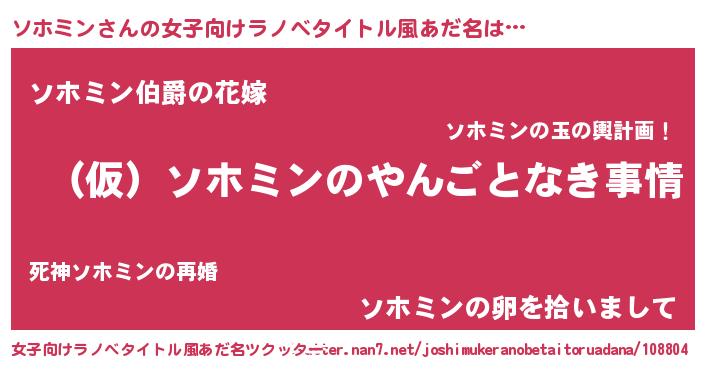 | 男性向けラノベタイトル風あだ名 | 『ソホミンの憂鬱』 |
