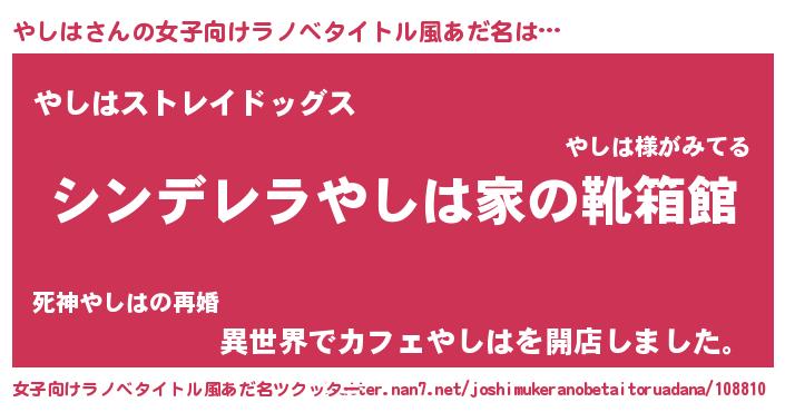 | 男性向けラノベタイトル風あだ名 | 『緋弾のヤシハ』 |