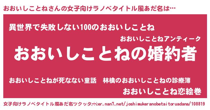 | 意味不明あだ名 | 『おおいしことねフォーエバー』 |
