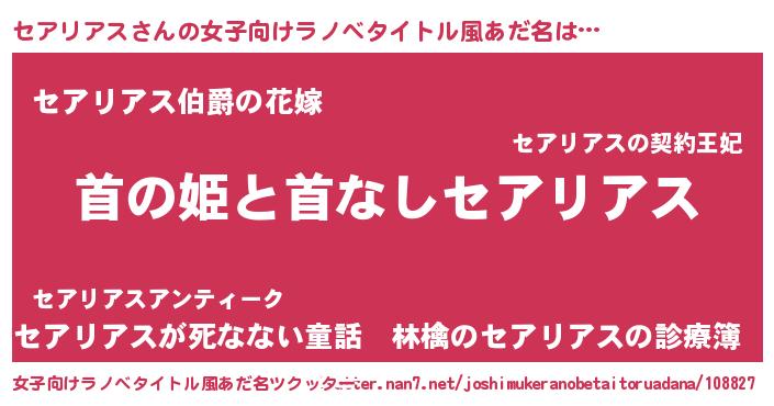| 男性向けラノベタイトル風あだ名 | 『はたらくセアリアスさま!』 |
