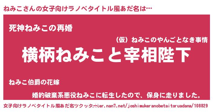 | 男性向けラノベタイトル風あだ名 | 『ねみこに滅ぼされるだけの簡単なお仕事です』 |