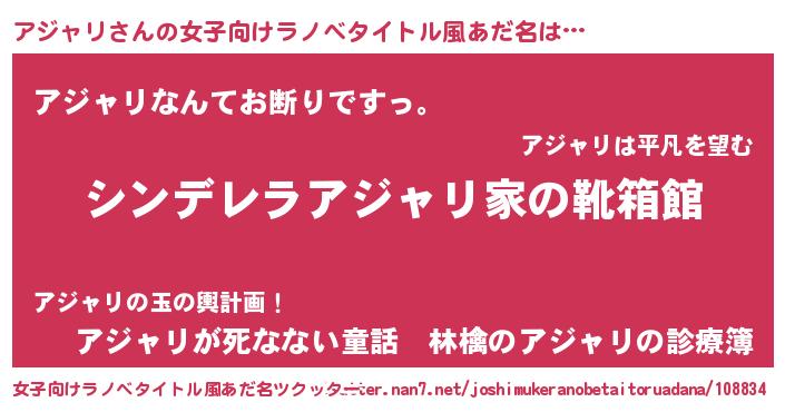 | 意味不明あだ名 | 『自称アジャリ』『めかぶ科アジャリ属』 |
