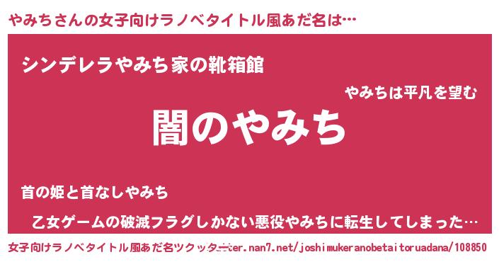 | 男性向けラノベタイトル風あだ名 | 『Re:やみちから始める異世界生活』 |