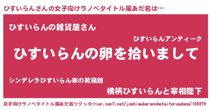 | 男性向けラノベタイトル風あだ名 | 『ひすいらんの嫁は女の子じゃないと思った?』 |