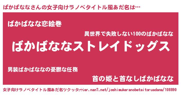 | 男性向けラノベタイトル風あだ名 | 『Re:ばかばななから始める異世界生活』 |