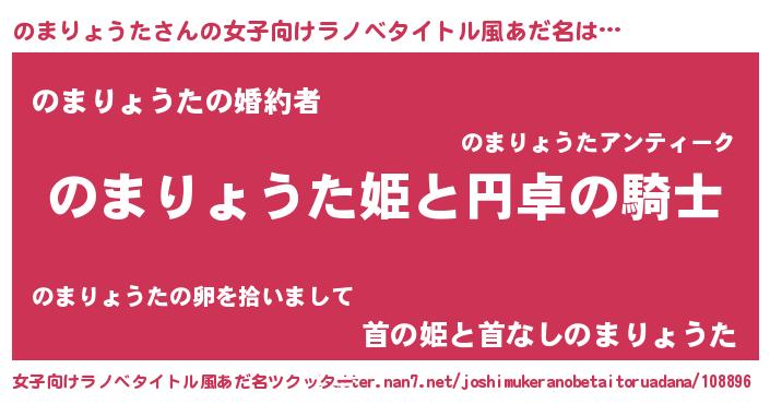 | 男性向けラノベタイトル風あだ名 | 『ノマリョウタアートオンライン』 |