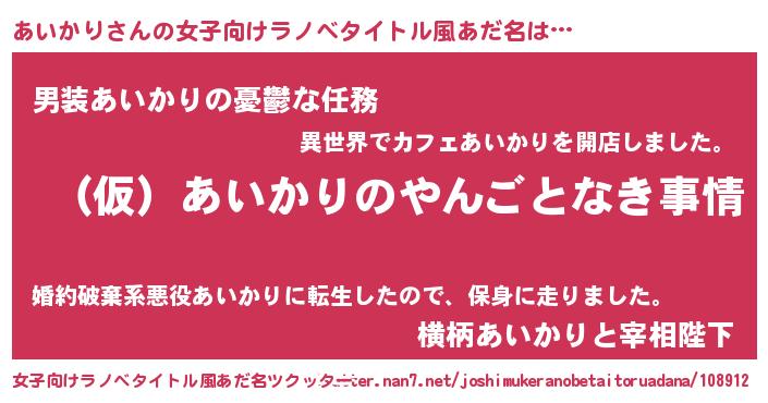 | 男性向けラノベタイトル風あだ名 | 『あいかりの憂鬱』 |