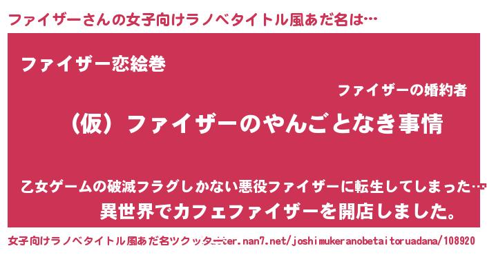 | 男性向けラノベタイトル風あだ名 | 『ファイザーの憂鬱』 |