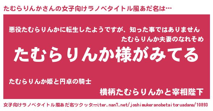 | 男性向けラノベタイトル風あだ名 | 『たむらりんかの嫁は女の子じゃないと思った?』 |