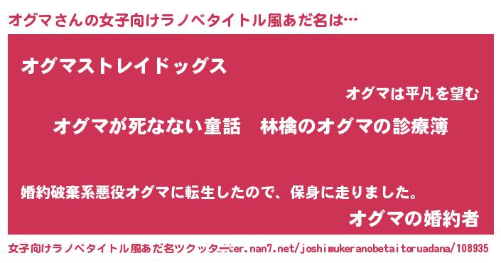 | 男性向けラノベタイトル風あだ名 | 『魔弾の王とオグマ』『オグマスレイヤー』 |