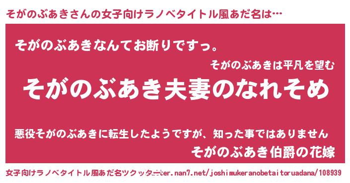 | 男性向けラノベタイトル風あだ名 | 『おまえをオタクにしてやるから、俺をそがのぶあきにしてくれ! 』 |