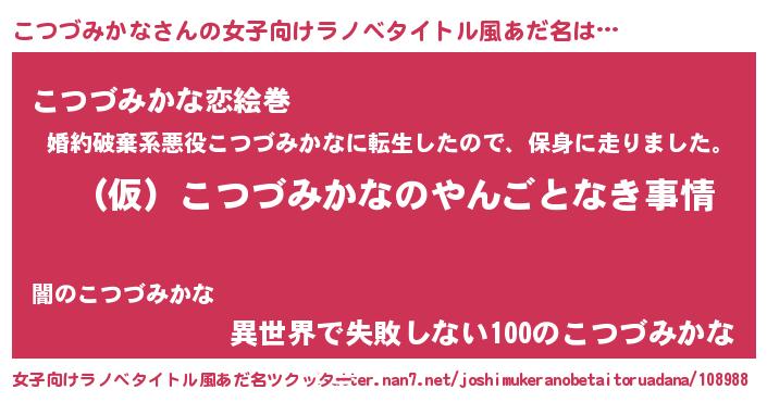 | 胡散臭い通販商品みたいなあだ名 | 『必ず成功するブレスレット…その名も「こつづみかな」』 |