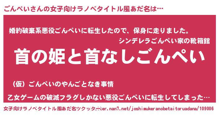 | 欧米人風あだ名 | 『アンジェラ・ごんぺい』 |