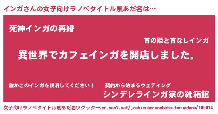 | 胡散臭い通販商品みたいなあだ名 | 『前代未聞の健康食品…その名も「インガ」』 |