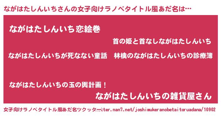 | 男性向けラノベタイトル風あだ名 | 『魔弾の王とながはたしんいち』 |