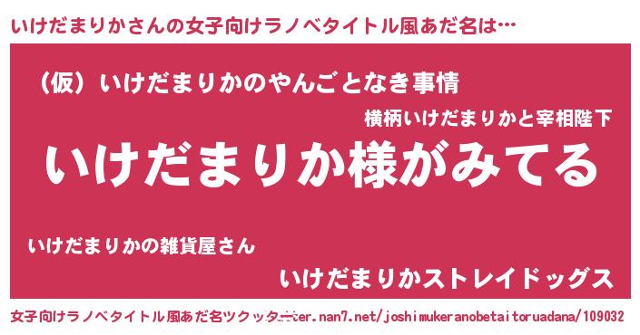 | 男性向けラノベタイトル風あだ名 | 『いけだまりかの嫁は女の子じゃないと思った?』 |