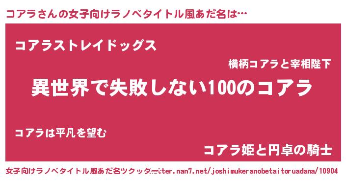 | 男性向けラノベタイトル風あだ名 | 『コアラという概念が存在しない退屈な世界 』 |
