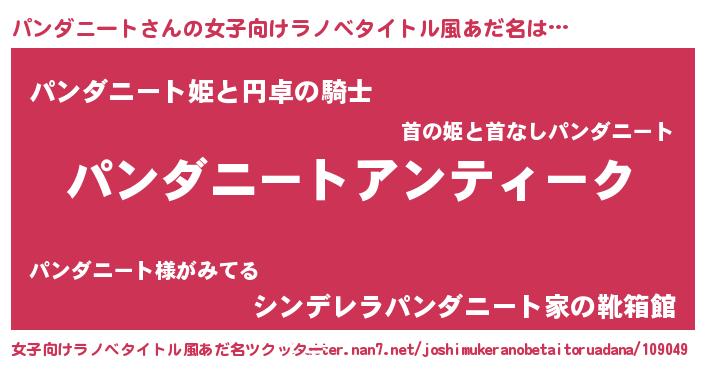 | 男性向けラノベタイトル風あだ名 | 『魔法科高校のパンダニート』 |