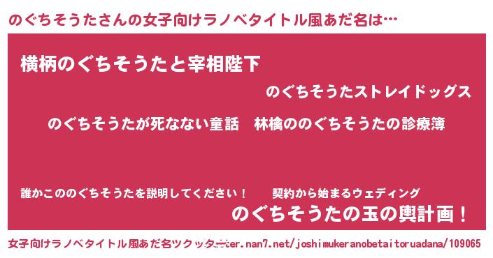 | 恥ずかしいあだ名 | 『ノグチソウタデラックス』『のぐっちょ』 |