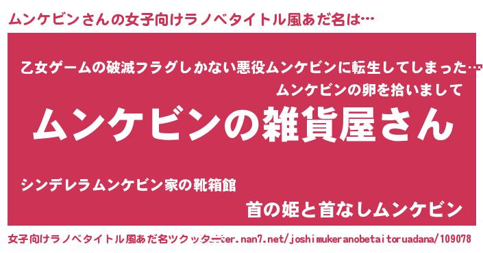 | 男性向けラノベタイトル風あだ名 | 『やはりムンケビンの青春ラブコメはまちがっている 』 |
