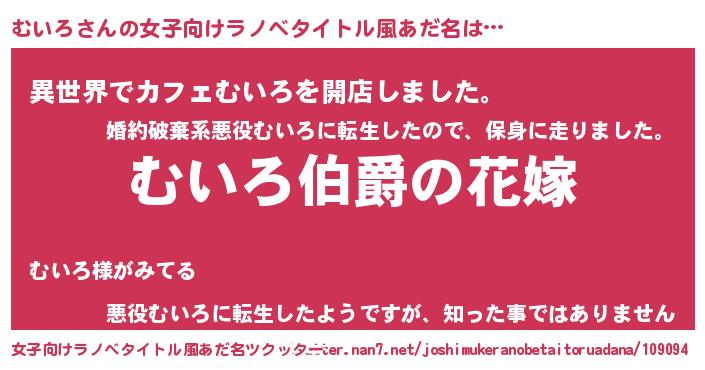 | 意味不明あだ名 | 『むいろフォーエバー』『永久保存むいろ』 |