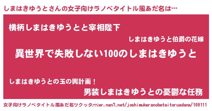 | ヘコむあだ名 | 『しまはきゆうと(小並感)』『レバニラ』 |