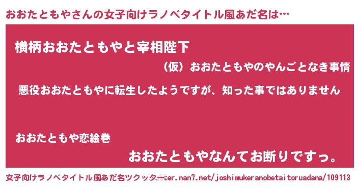 | 意味不明あだ名 | 『住所不定無職おおたともや(91歳)』 |
