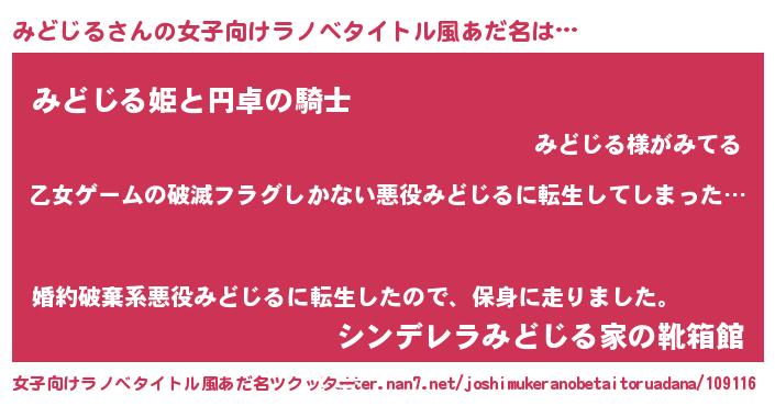 | 胡散臭い通販商品みたいなあだ名 | 『世界中を虜にした100年もののヴィンテージワイン…その名も「みどじる」』 |