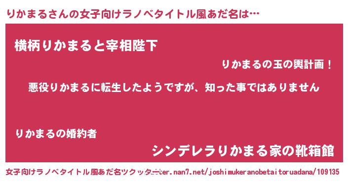 | ヘコむあだ名 | 『酢こんぶ』『りかまる(笑)』 |