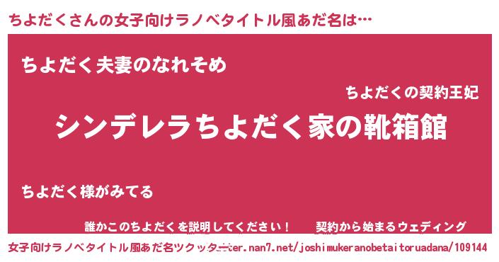 | 男性向けラノベタイトル風あだ名 | 『冴えないちよだくの育てかた』 |