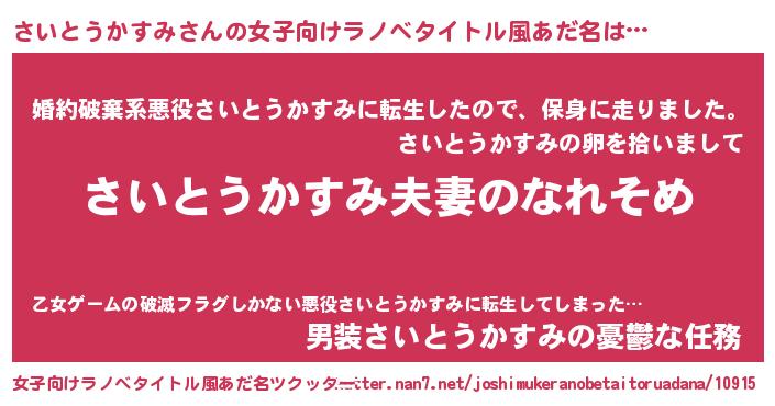 | 男性向けラノベタイトル風あだ名 | 『おまえをオタクにしてやるから、俺をさいとうかすみにしてくれ! 』 |