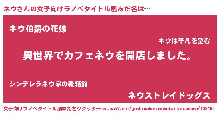 | ファンタジー風あだ名 | 『ネウディッシュ』『エターナルネウー』 |