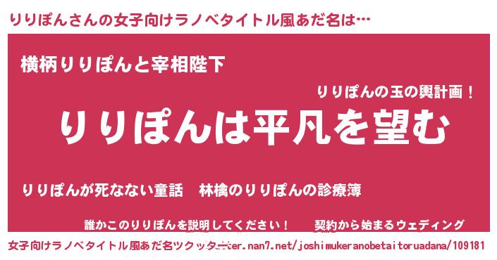 | 胡散臭い通販商品みたいなあだ名 | 『信頼と実績のペンダント…その名も「りりぽん」』 |
